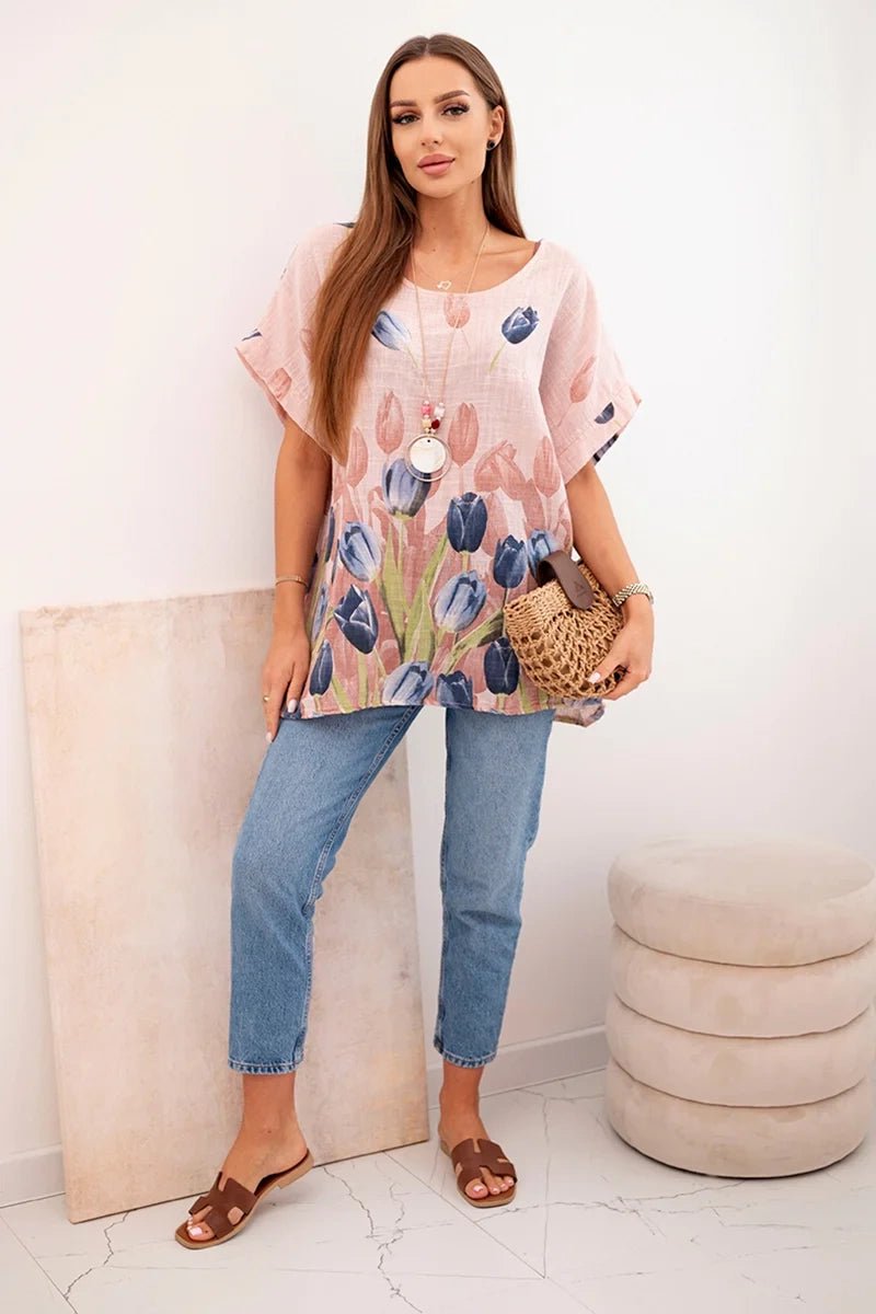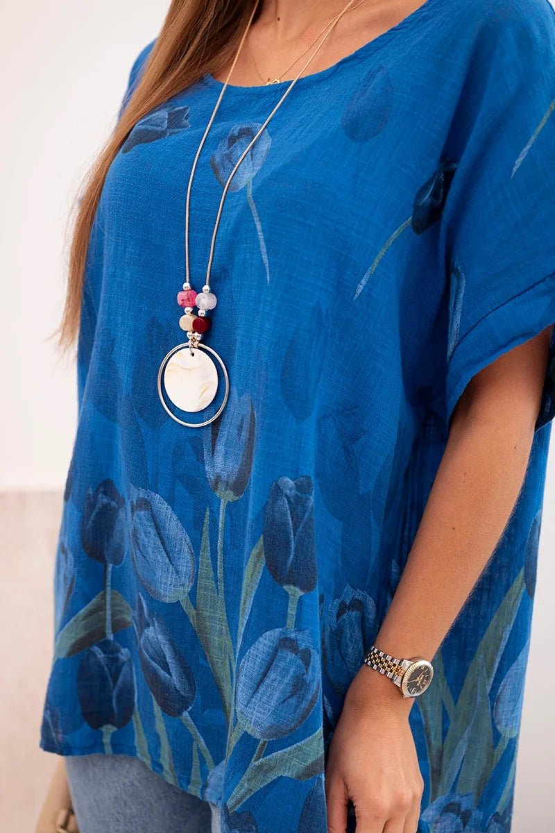 Women's cotton shirt with a floral pattern ART10739