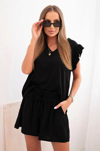 Moteriškas viskozės komplektas: palaidinė su raukiniais ir šortai ART7872